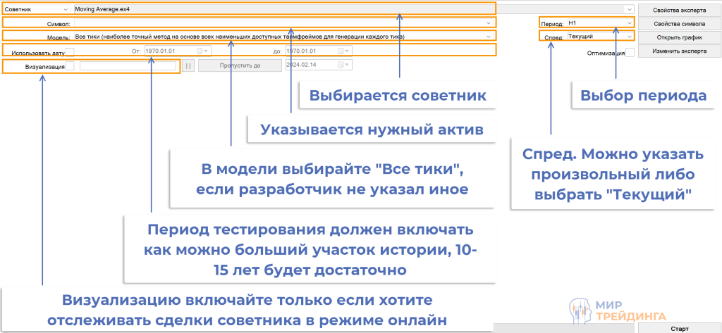 указывается временной отрезок, на котором будет проходить тест. Я тестирую советники на отрезке в 10 и больше лет;