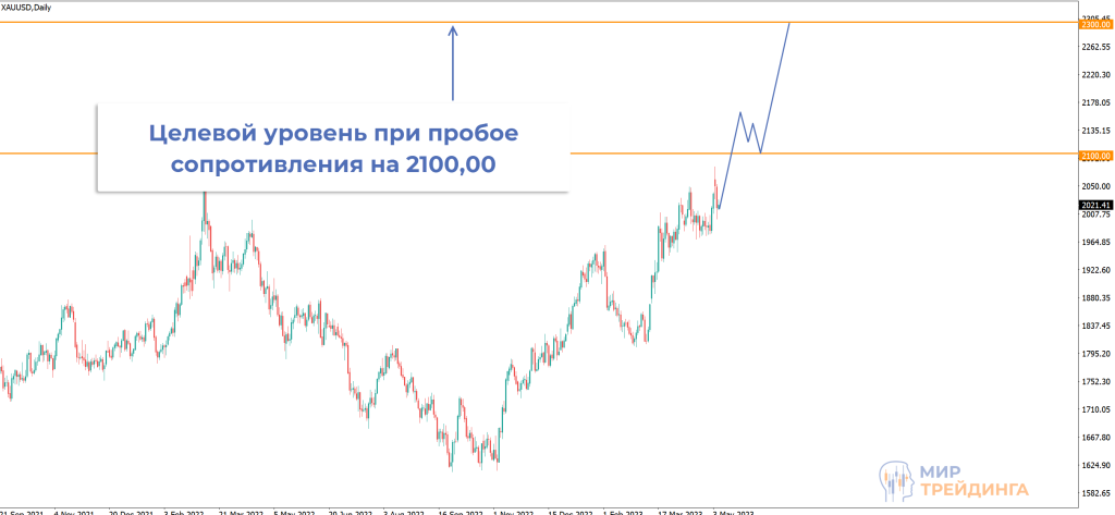 Если это сопротивление будет пробито, то высока вероятность роста как минимум до $2300. На рынке все еще есть покупатели. Они могут толкать золото к новым максимумам.