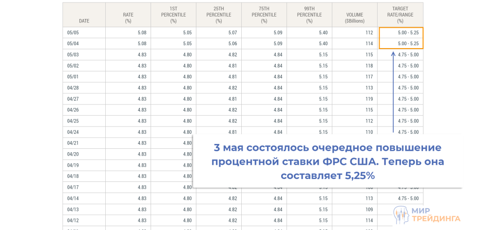 Напомню – ФРС стала активно повышать ставку для борьбы с инфляцией. Пандемия вынудила правительство использовать тактику раздачи вертолетных денег, что стало одной из причин рекордной инфляции. Повышение ставки используется как способ сдержать темп роста цен. Правда, есть риск сильного замедления темпов роста экономики.