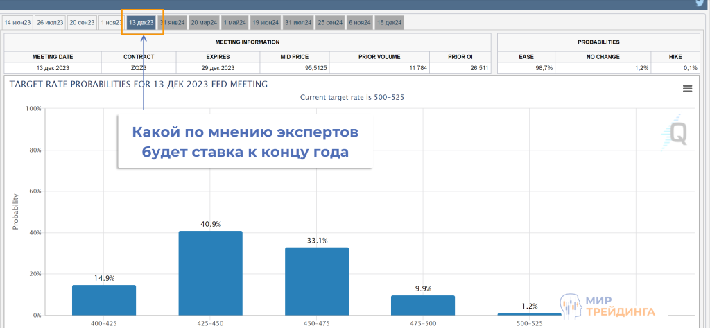 Аналитики и трейдеры настроены скептически в отношении дальнейшего ужесточения ДКП. Подавляющее большинство считает, что сейчас ставка находится на максимально возможном уровне. По состоянию на первую половину мая 2023 г. всего 1,2% трейдеров рассчитывает, что к концу года ставка останется на прежнем уровне. Более 40% полагает, что в конце года она снизится до 4,5-5,0%, не исключено и более резкое снижение.
