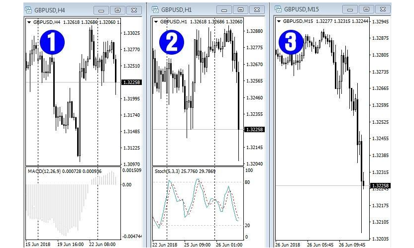 - Младший таймфрейм – конкретизация точки входа, установка стопа и фиксация цели.