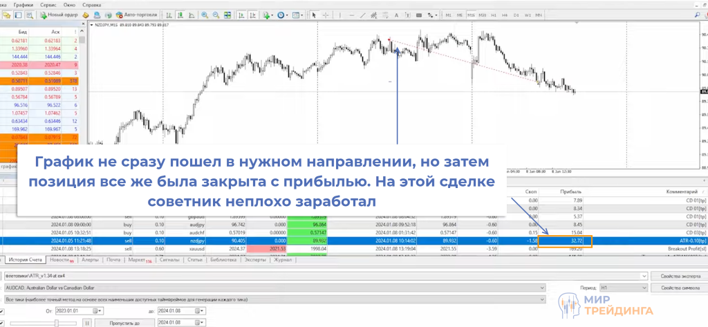 При работе на реальном рынке вы часто будете видеть, что цена не сразу идет в нужном направлении. Это не влияет на эффективность ATR.