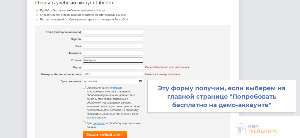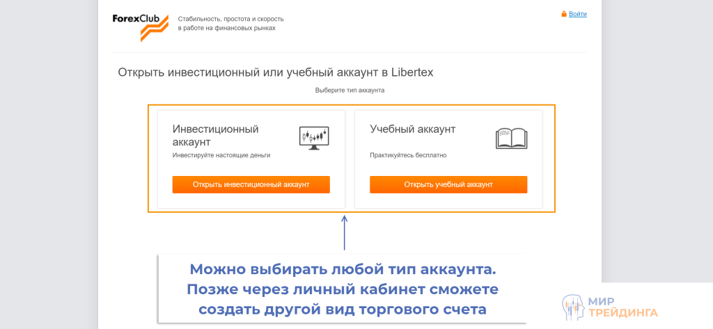 В зависимости от выбранного варианта будут отличаться регистрационные формы, но в реальности разницы нет. Вы в любом случае создадите личный кабинет на fxclub.by и через него при необходимости сможете создать дополнительный демо/реальный счет.