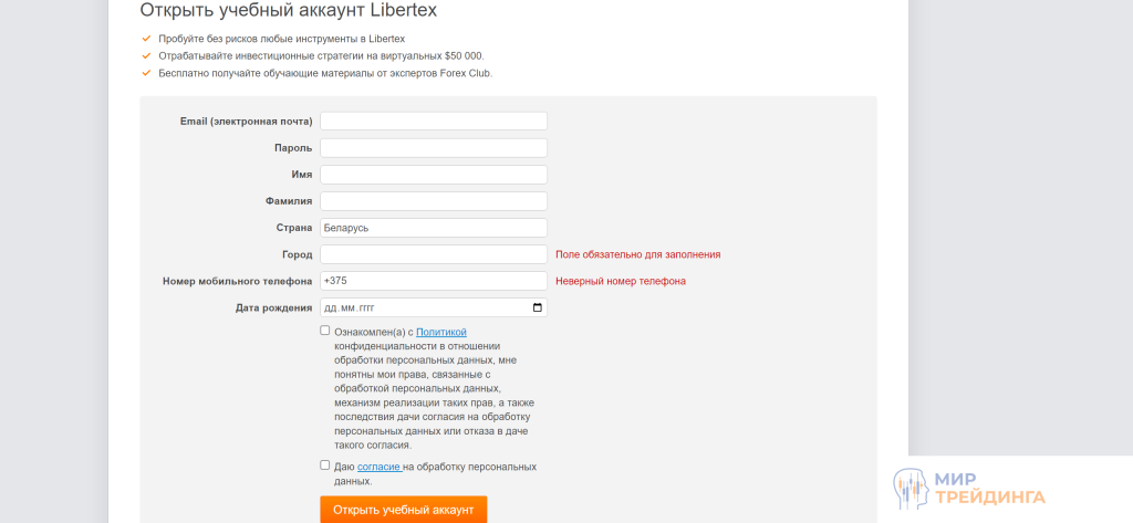 Учтите – Форекс клуб Беларусь не предоставляет услуги клиентам из России. Если выбрать в регистрационной форме эту страну, то получите соответствующее уведомление и не сможете продолжить регистрацию.