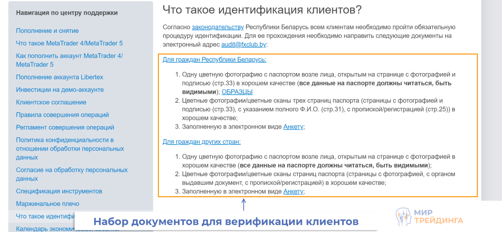 Для прохождения верификации рекомендуем сразу после регистрации отправить сканы документов на audit@fxclub.by. Требования к сканам стандартные – они не должны обрабатываться в редакторах, текст должен читаться, также должны быть видны уголки документов.