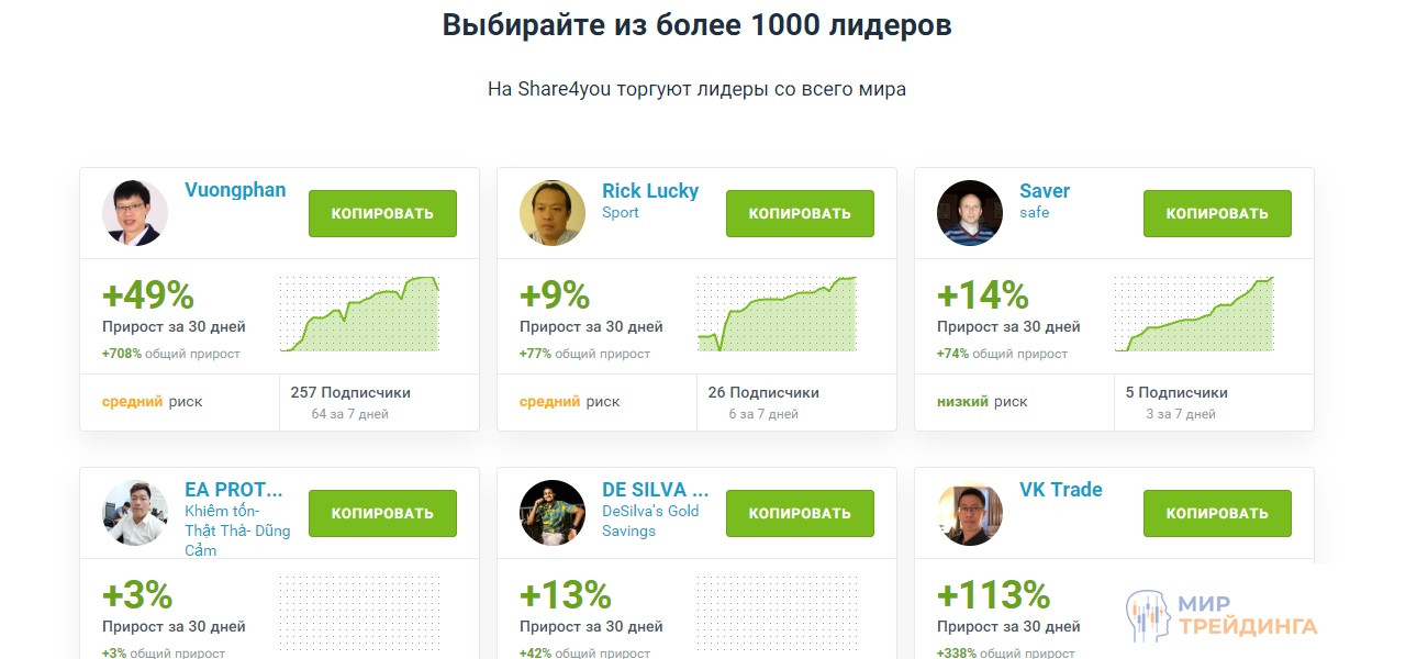 Примеры сервисов копитрейдинга