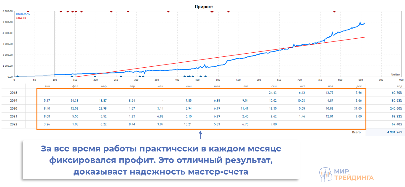 - доходность по месяцам показывает стабильный рост на многолетней дистанции. Нет явных рывков в обе стороны;