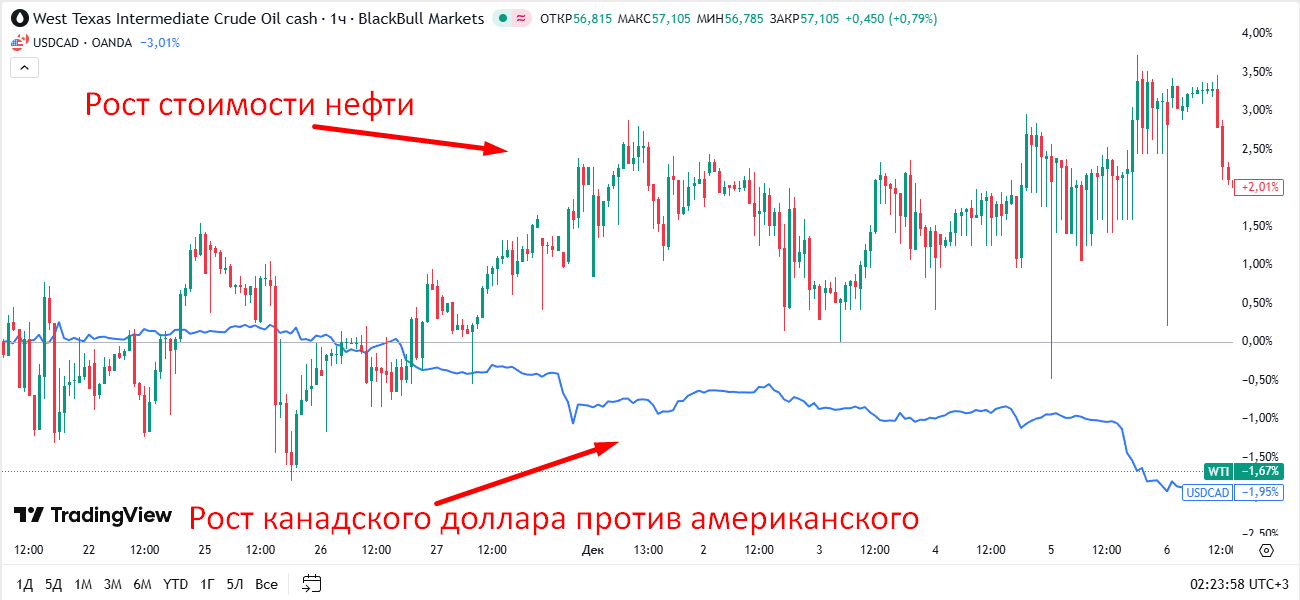 Рис.4 Нефть и USD/CAD
