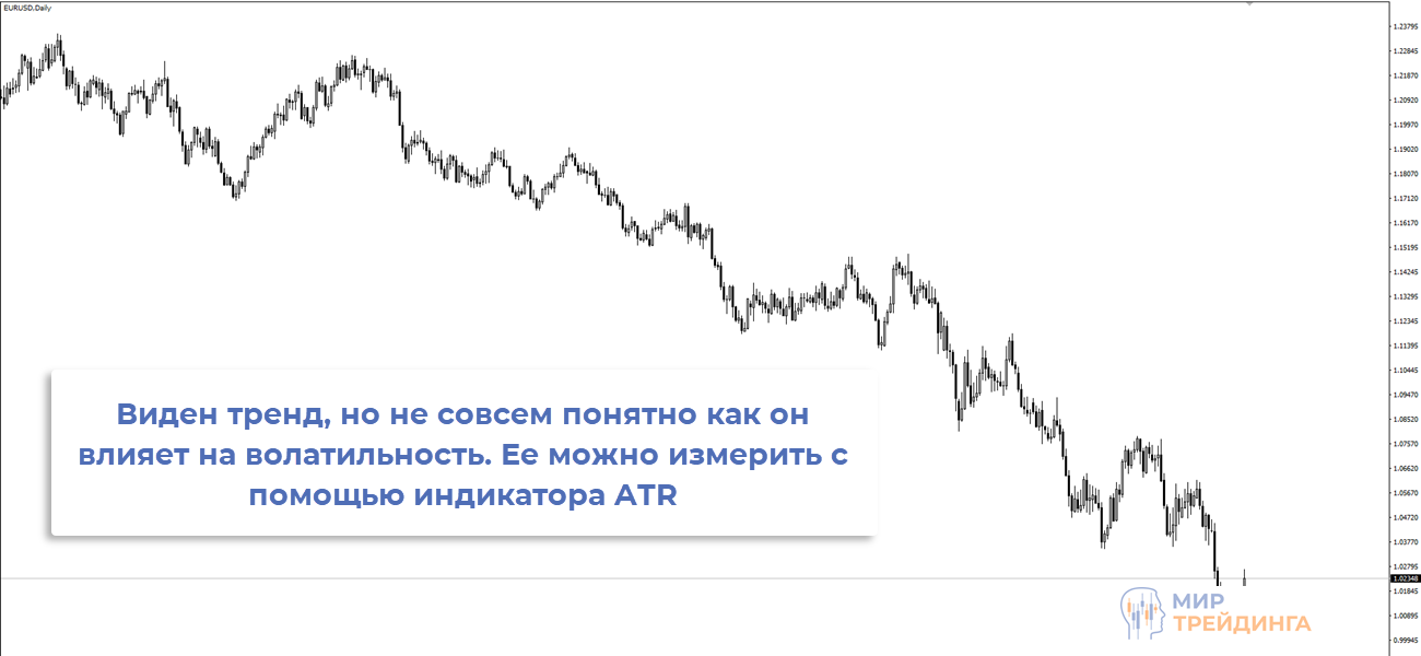 Чтобы узнать об уменьшении волатильности, используется индикатор ATR. Он показывает среднее движение инструмента от минимума до максимума в течение одного дня. За расчетный период берем торговый месяц. Под месяцем понимается 22 дня – примерно столько дней на Форексе ведутся торги.