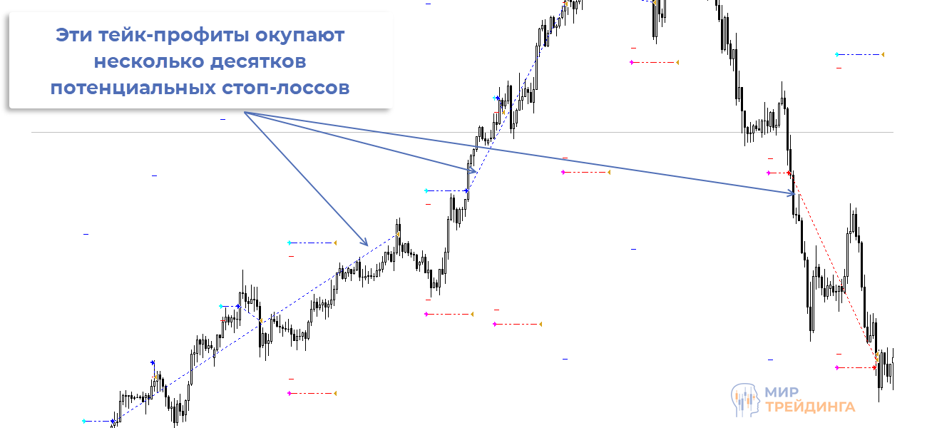 - 3 тейк-профита позволяют окупить 42 стоп-лосса. Слить депозит с такой статистикой просто невозможно.