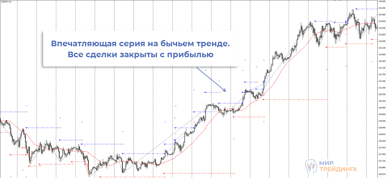 - советник получает возможность открывать серии прибыльных сделок, торгуя по рынку. Популярный вариант торговли – на окончании коррекции.