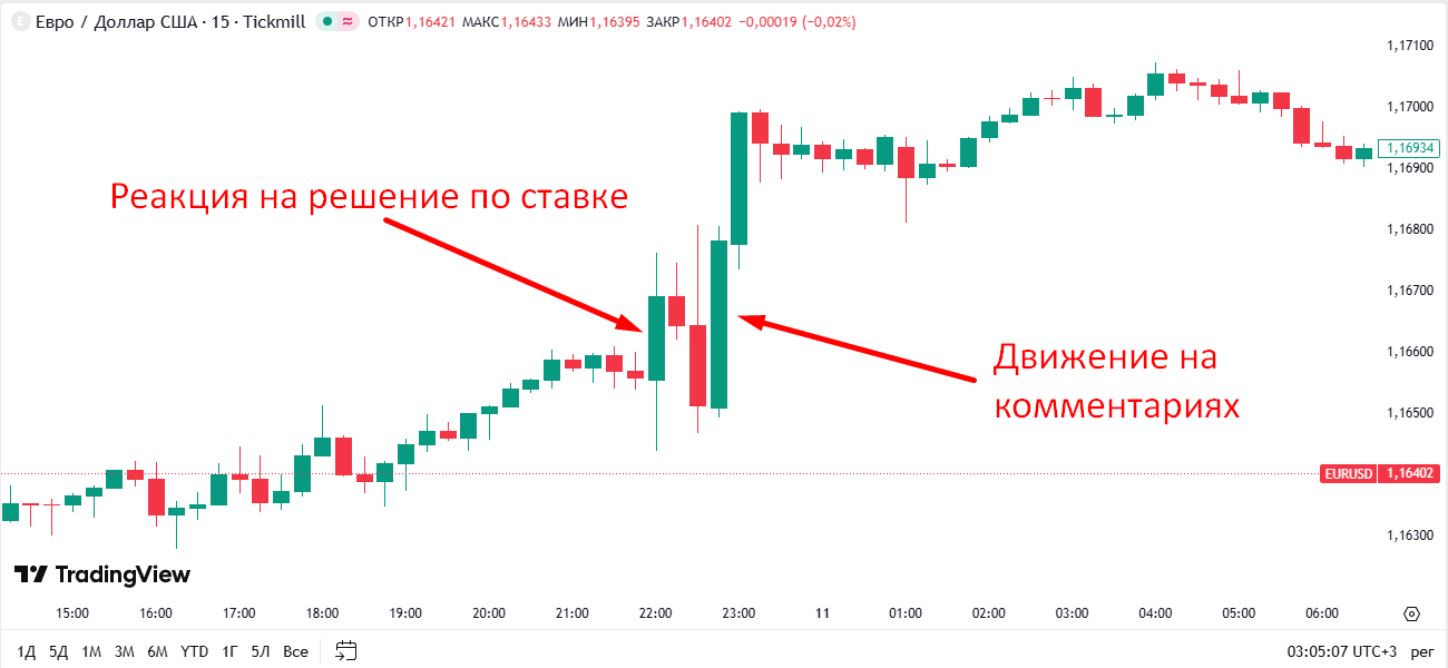 Рис.3 Реакция на решение по ставке и последующие комментарии главы