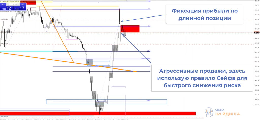 короткая позиция была закрыта по безубытку. Правило Сейфа сработало, после этого оставшиеся 50% объема уже не несли никакого риска. Нисходящее движение продолжилось, но не достигло ожидаемых уровней. В итоге остаток закрыт по стопу, но за счет правила Сейфа профит по первой половине объема перекрыл полученный убыток.