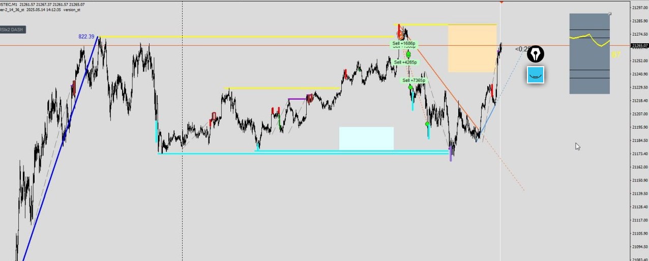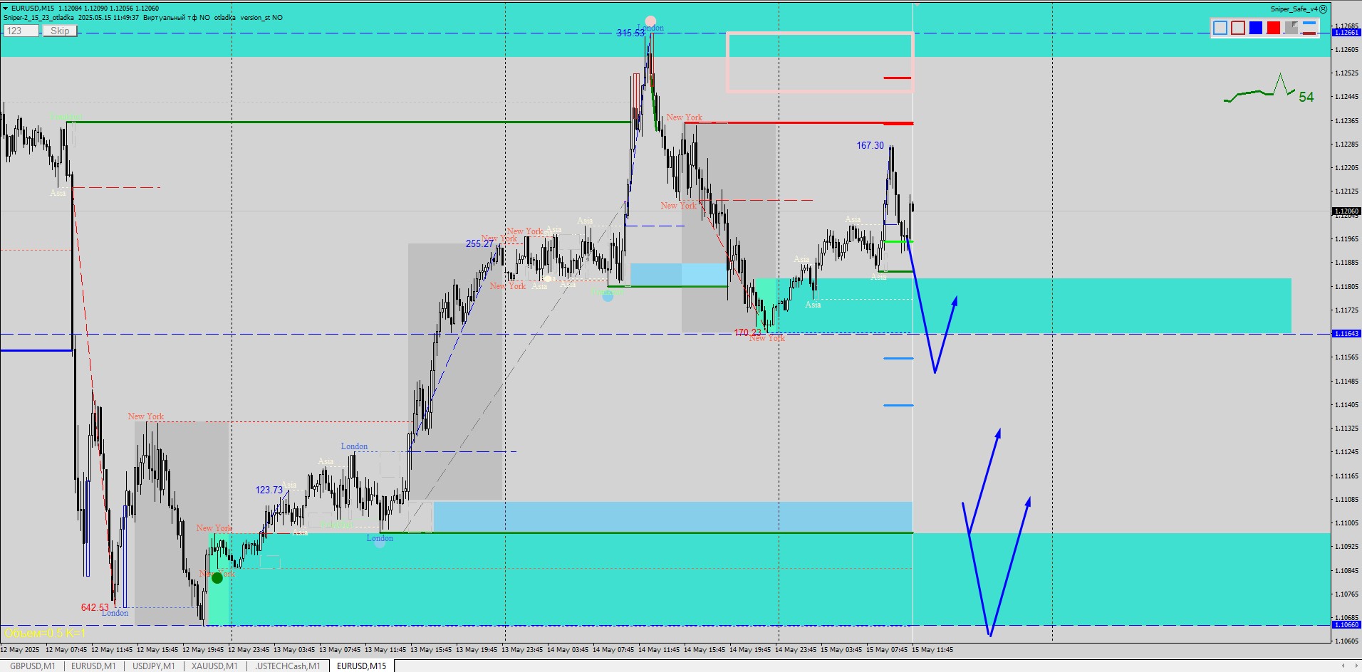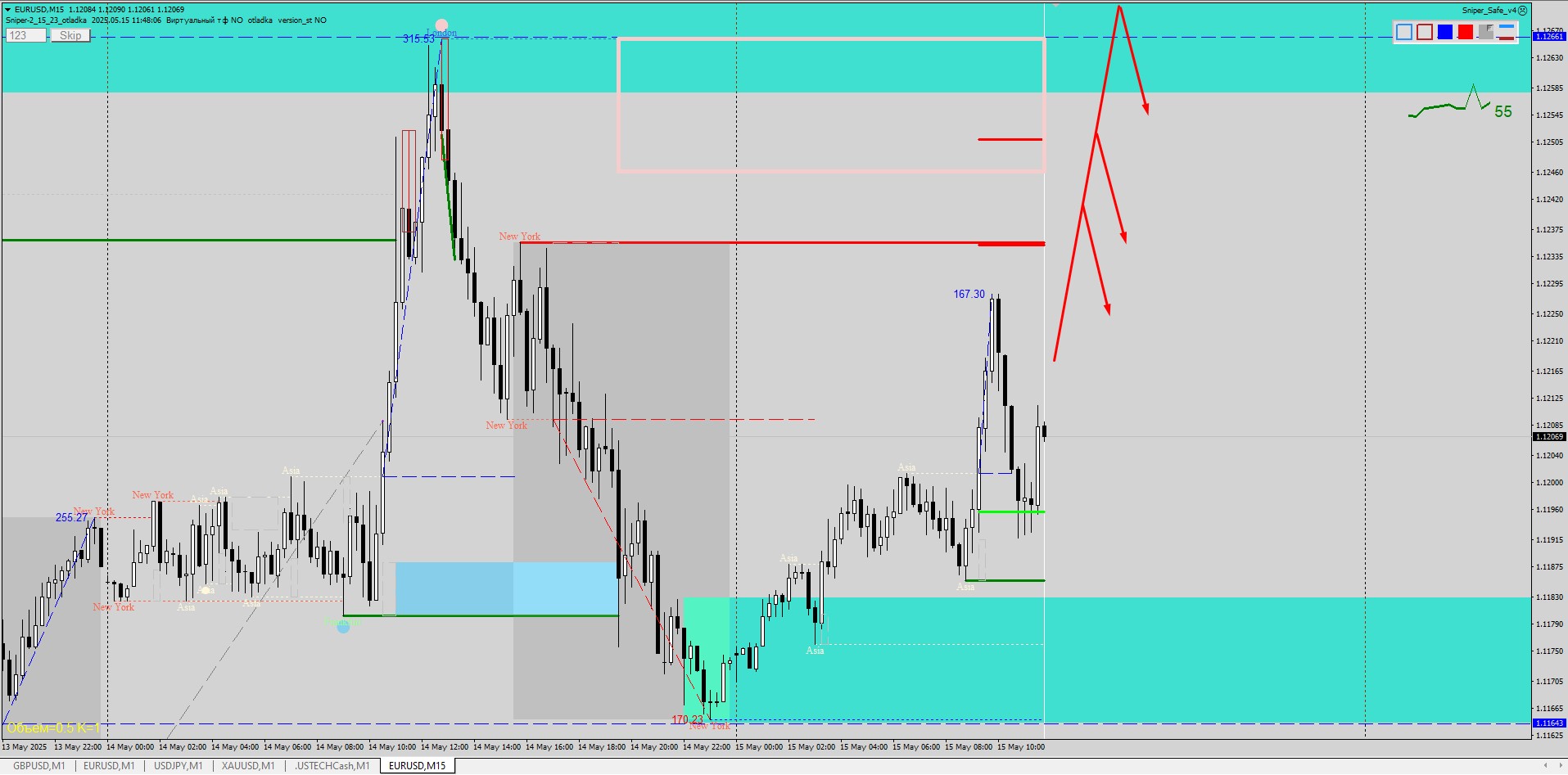 Речь идет не о максимуме дня, а о локальной зоне, где может возникнуть краткосрочная реакция продавцов. В случае появления сигнала на М15 или М1 — можно рассмотреть точку входа с коротким стопом.