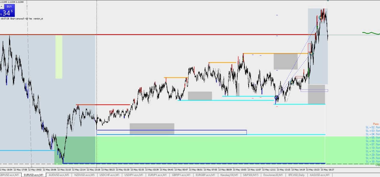 Сегодня, 15 мая, с 15:30 до 16:00 мск ожидается рост волатильности — возможен выход новостей из США, способных повлиять на движение пары EUR/USD. В такие моменты важно строго соблюдать правила торговой системы, в частности: