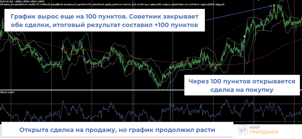 Если движение продолжается и график растет еще на 100 пунктов советник раскрывает замок. В результате: