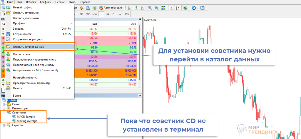 В этом материале показан вариант действий для простой установки в терминал. В реальности вам придется ставить CD на VPS. Это нужно для того, чтобы роботы торговали 24х5. Детальные инструкции по установке включены в материалы, которые получают все подписчики.