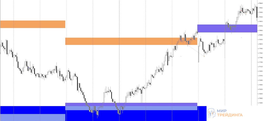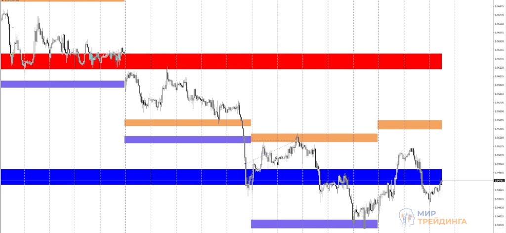 По EURCHF покупки совершались на сильном падении. В рамках медвежьего импульса график сначала пробил недельный ATR, затем коснулся месячной зоны поддержки, назревал откат после сильного падения.