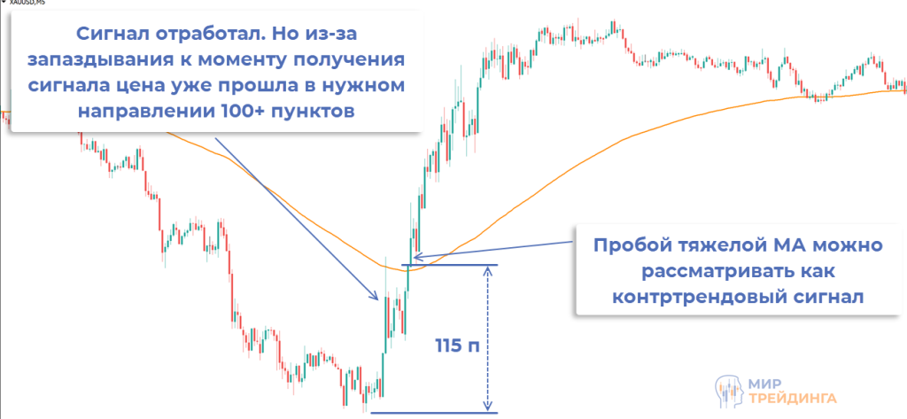 сильное запаздывание сигналов. Это не лучшим образом влияет на коэффициент Risk Reward;