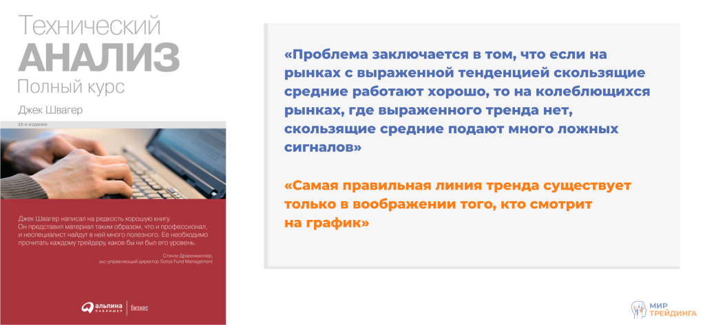 В своей самой известной книге Швагер излагает аналитические методы, которые по его мнению актуальны на рынке и применяются в современном онлайн-трейдинге. Рассматриваются как классические методы, так и более современные. На примерах объясняется суть того или иного приема. Весь технический анализ построен на простых паттернах и закономерностях. При этом можно выделить статистические показатели. В качестве простого примера можно привести трендовые линии и каналы. Цена реагирует на них и отскакивает гораздо чаще, чем игнорирует. Соответственно, это можно использовать в своей системе, купить или продать актив в краткосрочной перспективе.