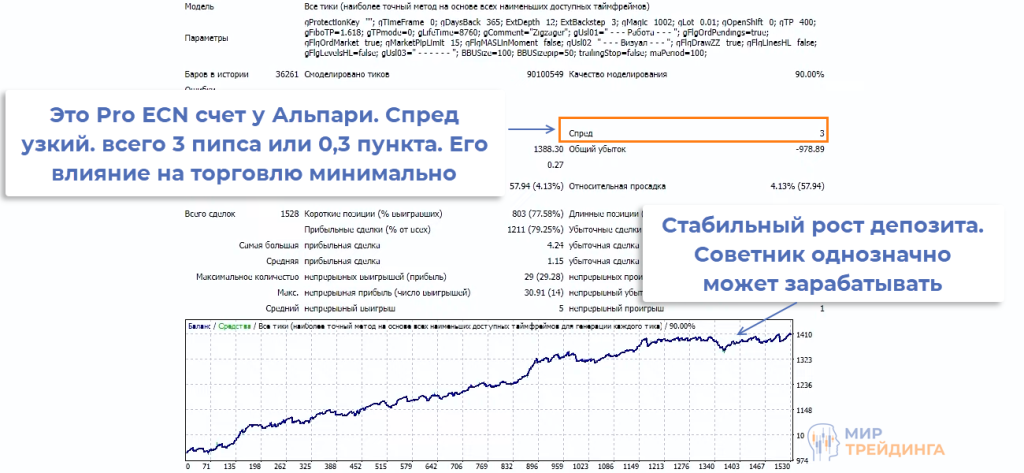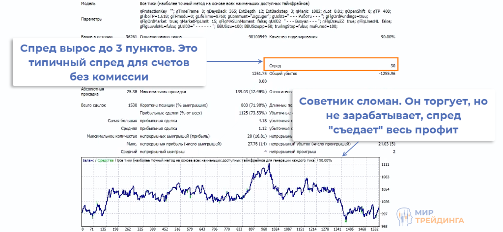В примерах выше использовался один и тот же робот из нашего портфеля. Zigzager стабильно зарабатывает на ECN счетах с узким стоп-лоссом и ломается при переходе на стандартные счета.