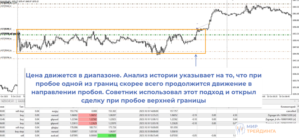 Например, Zigzagger – советник с явно выраженным трендовым характером. Торгует при пробое экстремумов зигзага с фильтрацией направления сделок скользящей средней. ATR – его противоположность и зарабатывает при движении графика в горизонтальном коридоре.