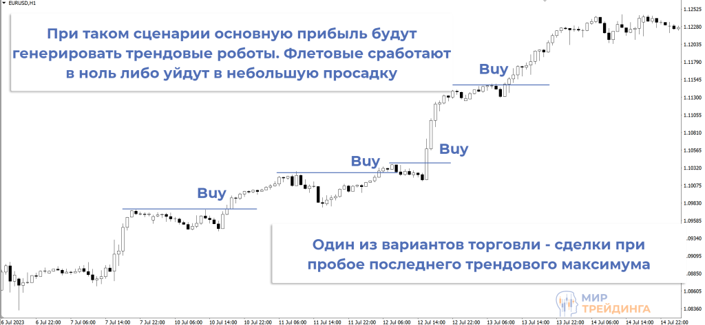 Еще одно важное правило – понимание для какой фазы рынка подходит советник. Портфель должен быть стабильным и во флете, и при работе на трендовом участке.