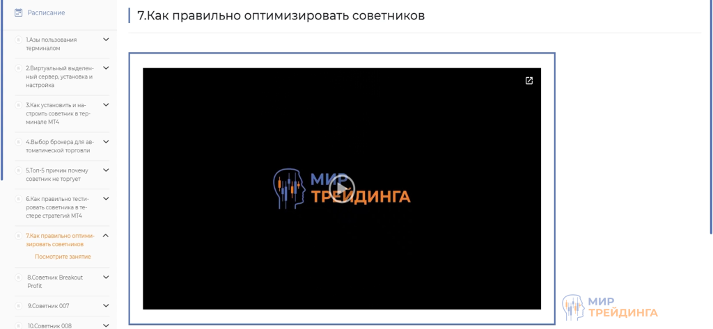 Если решите оформить подписку на наш портфель, то для начала придется пройти небольшое обучение, оно входит в формат подписки. В личном кабинете увидите набор видеоуроков, постепенно знакомящих вас с автотрейдингом. Разбираются все нюансы, начиная с настройки терминала и заканчивая правильной установкой роботов на VPS.