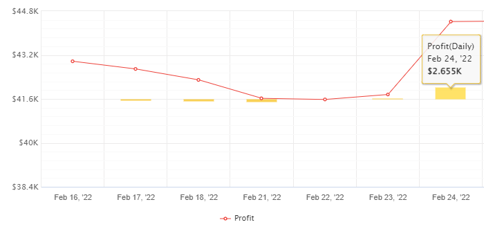 Вы наверняка уже видели много информации о том, как можно было бы заработать в условиях крупного падения. Мы же никому не рассказывали такого – наши трейдеры действительно заработали на этом падении, используя портфель советников. 24 февраля, в день крупнейшего за последнее время падения финансовых рынков, на 12:00 МСК прибыль по портфелю составляла +1 222$, а уже через 3 часа увеличилась еще на 1727$ и на пике достигала +2949$. Итоговые результаты за 24.02.22 составили +2655$.