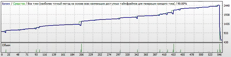Если робот использует для торговли геометрическую прогрессию и не имеет ограничения по просадке (локирование или мартингейл), то сбалансировать портфель с ним будет невозможно. Их нельзя включать в портфель. Неважно, как эффективно будут торговать другие советники, если один этот робот имеет возможность получить 100% просадку, т.е. слить депозит. Чтобы было понятнее – вот результаты прогона на тестере советника Silent Ilan v1.0, основанного на мартингейле. Итог его работы – полный слив депозита.