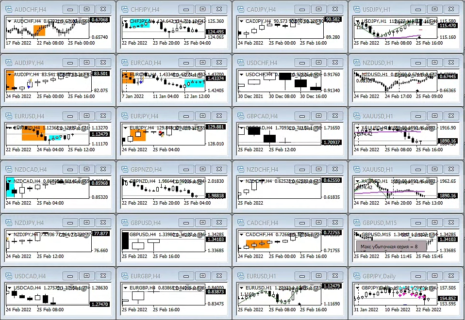 Для эффективной автоторговли недостаточно одного-двух ботов – обычно используется целый портфель. Портфель советников – это набор торговых роботов, предварительно подобранных (или созданных), протестированных и настроенных трейдером. Все они устанавливаются и торгуют на одном счете, но каждый из них работает по своей уникальной торговой стратегии: на разных валютных парах, таймфреймах и фазах рынка. Также на один счет может быть установлено сразу несколько одинаковых роботов, торгующих на разных валютных парах.