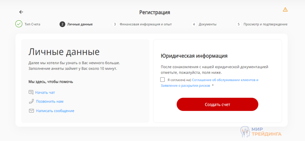 Создание учебного счета на порядок проще по сравнению с реальным. Здесь нет никакой ответственности, поэтому заполнять детальные анкеты не нужно.