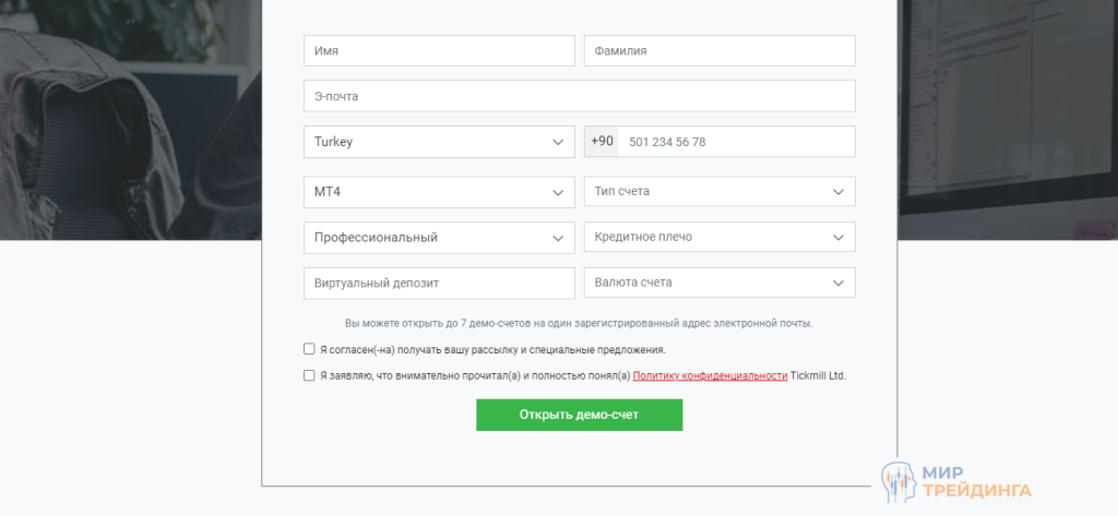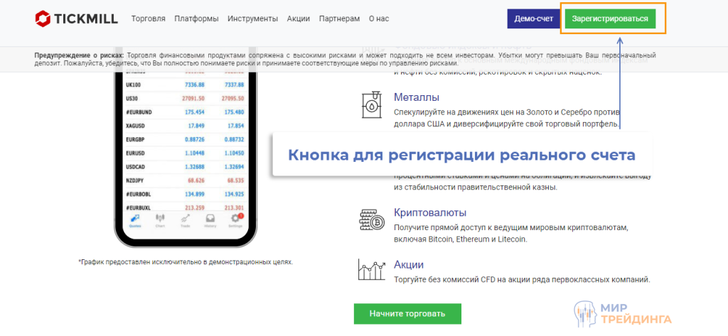 ЗАРЕГИСТРИРОВАТЬСЯ НА TICKMILL