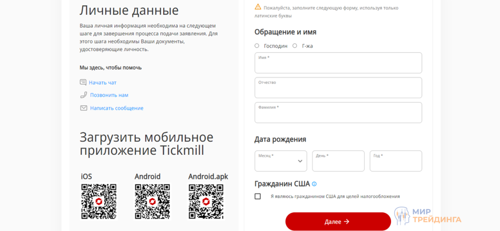 Tickmill не работает с гражданами США, это объясняется требованиями местного законодательства. Если попытаетесь выделить пункт «Я являюсь гражданином США», то получите соответствующее уведомление и не сможете продолжить регистрацию.