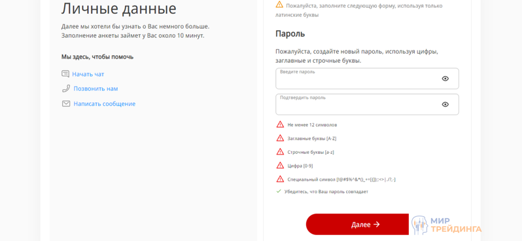 создается и подтверждается пароль. Требования стандартные – буквы в разном регистре + цифры + специальные символы;