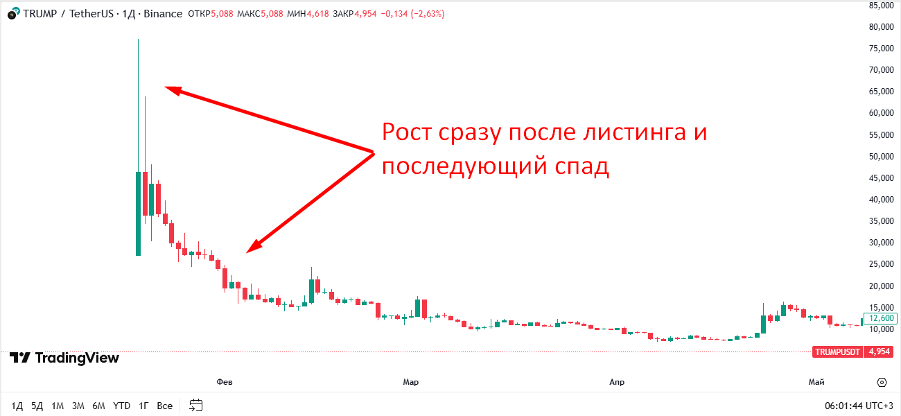 Рис.5 Типичный шаблон поведения цены после листинга