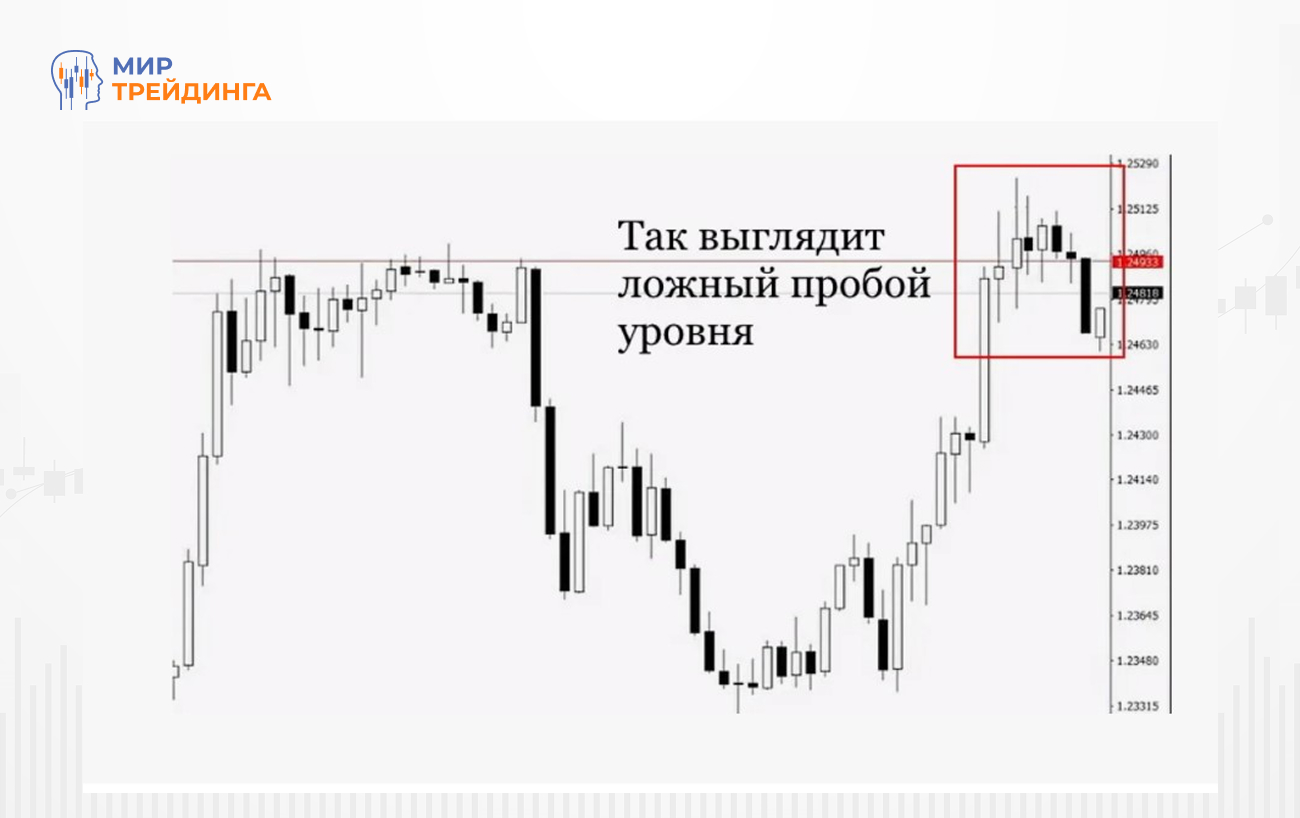 Данная модель формируется, когда цена ненадолго пробивает значимый уровень поддержки или сопротивления, активируя стоп-ордера розничных трейдеров, после чего быстро возвращается в торговый диапазон.