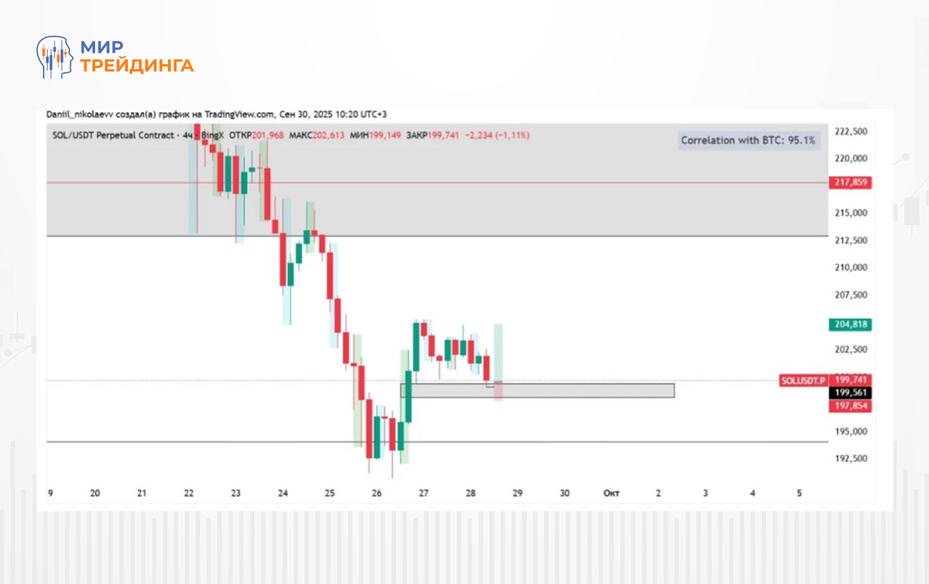 Критически важным является анализ поведения цены в пределах этого диапазона: тестирование нижней границы сопровождается повышенным объемом продаж, однако цена не может закрепиться ниже, что свидетельствует о поглощении всего предлагаемого объема.
