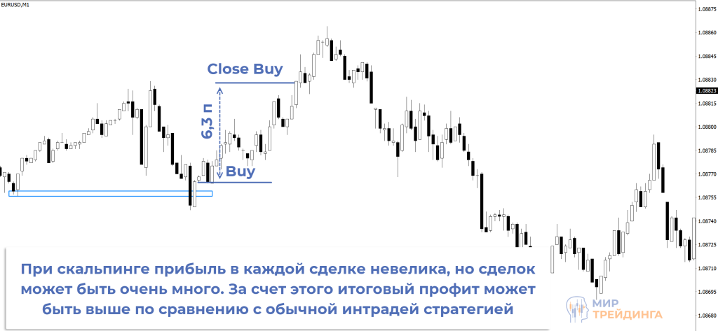 пипсовка/скальпинг. Отличительная черта – высокая интенсивность заключения сделок, в день агрессивный скальпер может открывать десятки и даже сотни позиций. Цели небольшие, от нескольких пунктов до нескольких десятков пунктов. Практически все позиции закрываются в течение дня, перенос сделки через полночь допускается разве что в порядке исключения. Используются таймфреймы до М15, чаще всего это М1-М5;