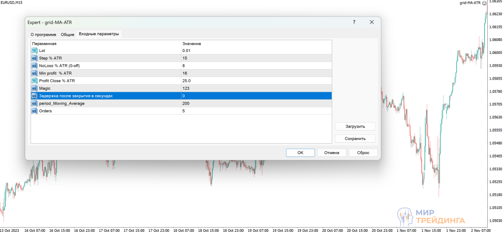 • задержка после закрытия в секундах – пауза после закрытия сетки. Советник выждет некоторое время и только после этого начнет построение новой сетки,