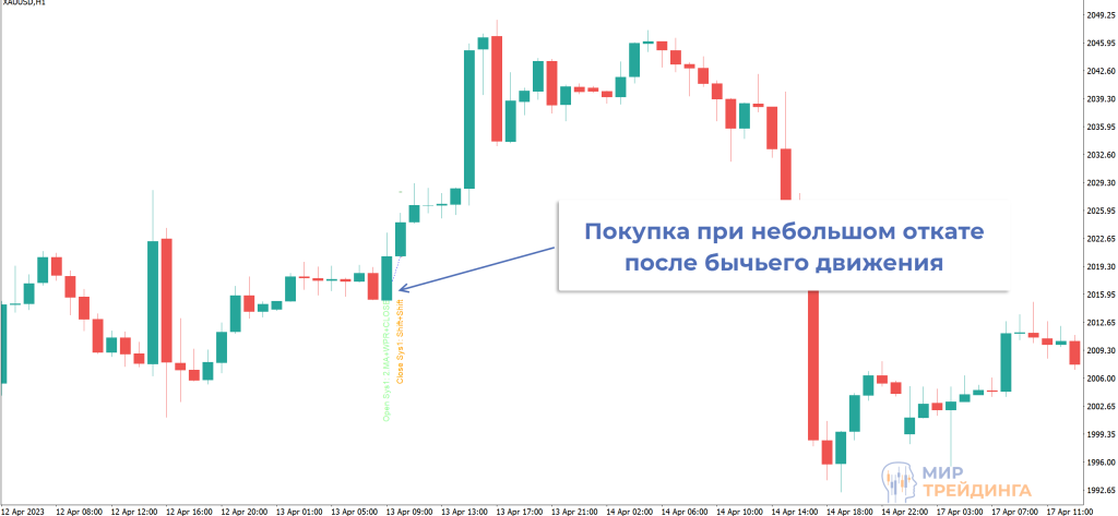 Один из вариантов работы – покупка после окончания коррекции. Советник определяет основное направление движения и при окончании отката входит в рынок. Есть алгоритм досрочного закрытия сделок, так что часть позиций будет закрываться советником принудительно.