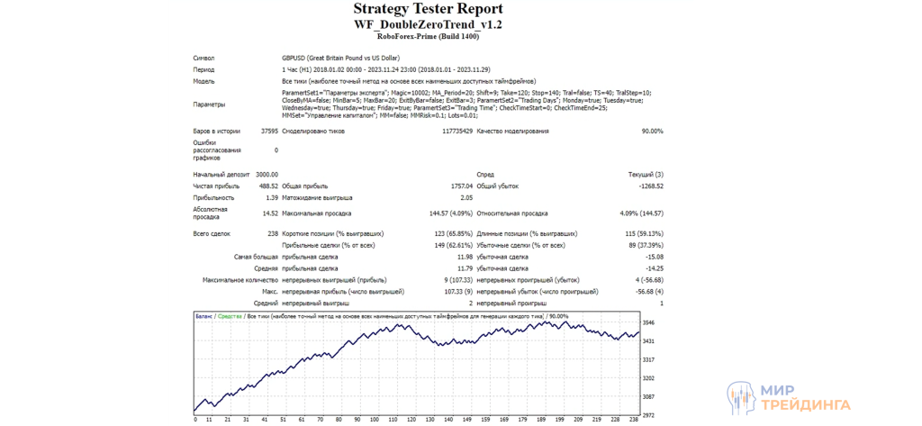 прибыль за 5 лет на минимальный лот. Здесь явный победитель – Double Zero Trend, при тесте он заработал $488,52, его соперник – $292,29. Правда, если оценивать распределение прибыли, то окажется, что Double Zero Trend заработал основную часть профита в начальной фазе теста. Последние пару лет он стагнирует и капитал практически не растет;