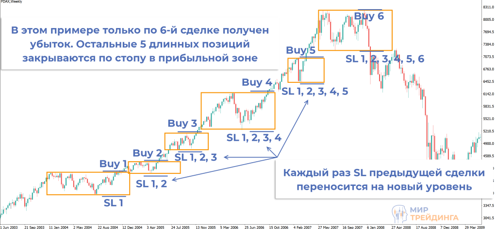 За счет этого удается собирать целую серию прибыльных позиций. Последняя гарантированно закроется по стопу, но накопленный профит с запасом перекрывает эти потери. В случае с Дарвасом был и элемент везения, он попал на удачный участок рынка. Но в целом эта методика работает и в наши дни, по этой логике развиваются практически все тренды на фондовом и других рынках.
