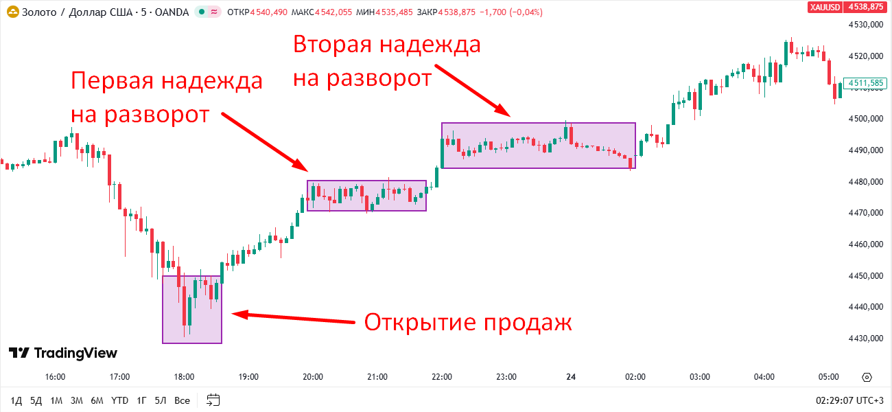 Так рождается ловушка надежды – ситуация, когда трейдер теряет контроль над сделкой, игнорируя все сигналы против себя. Надежда мешает действовать по системе и удерживает в рынке дольше, чем нужно, превращая управляемый убыток в значительные потери. Хуже, если надежда сопровождается алгоритмом усреднения или мартингейлом, в этом случае убытки увеличиваются по экспоненте до полного обнуления депозита.
