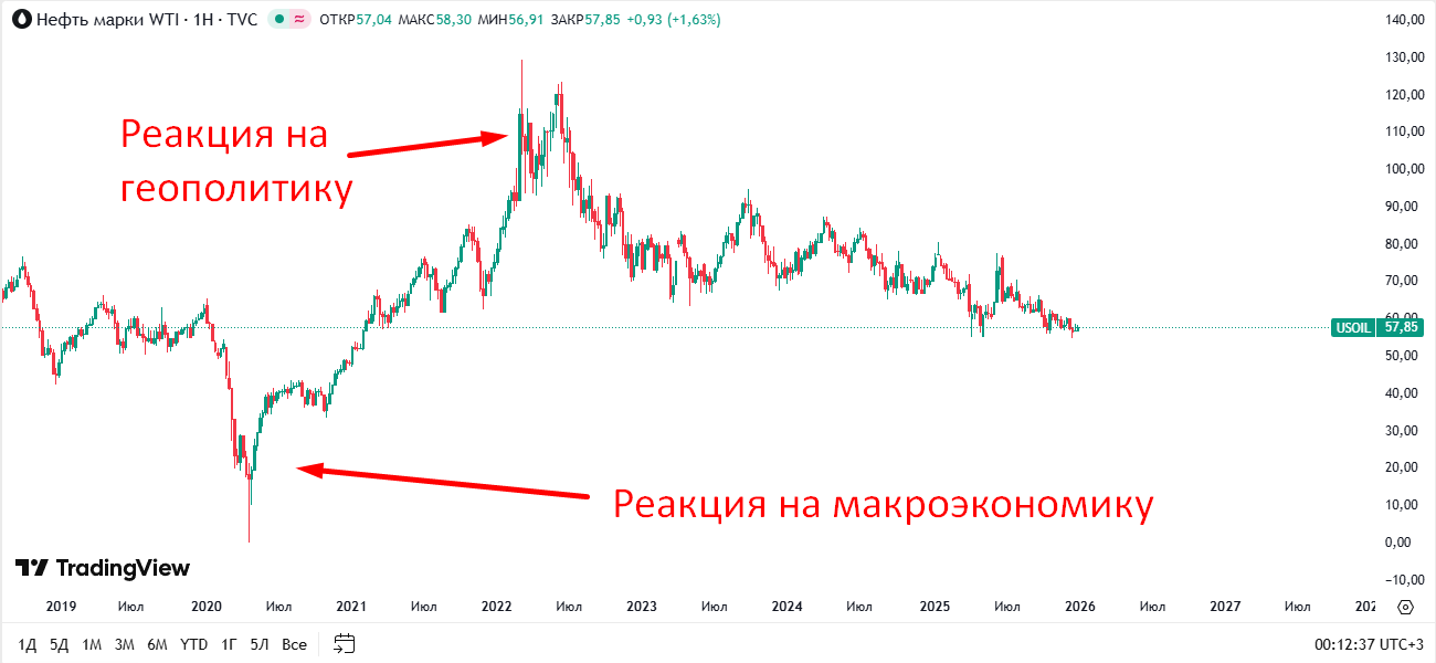 Рис.4 Реакция нефти на различные события