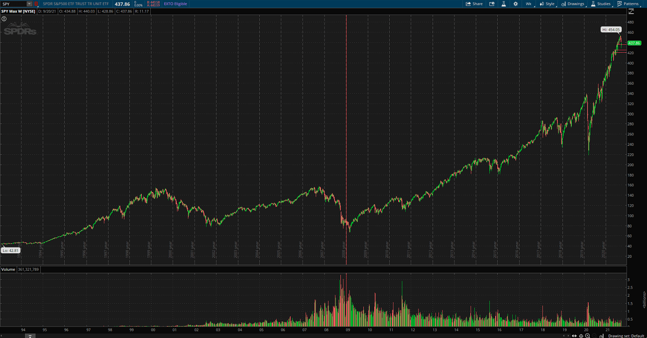Чтобы лучше понимать динамику, достаточно посмотреть на условный индекс S&P500 – это средний индекс по всем компаниям США (500 самых крупных из них). И за 13-летний период – 2009-2021 годы – мы видим фазу нереального бычьего тренда.