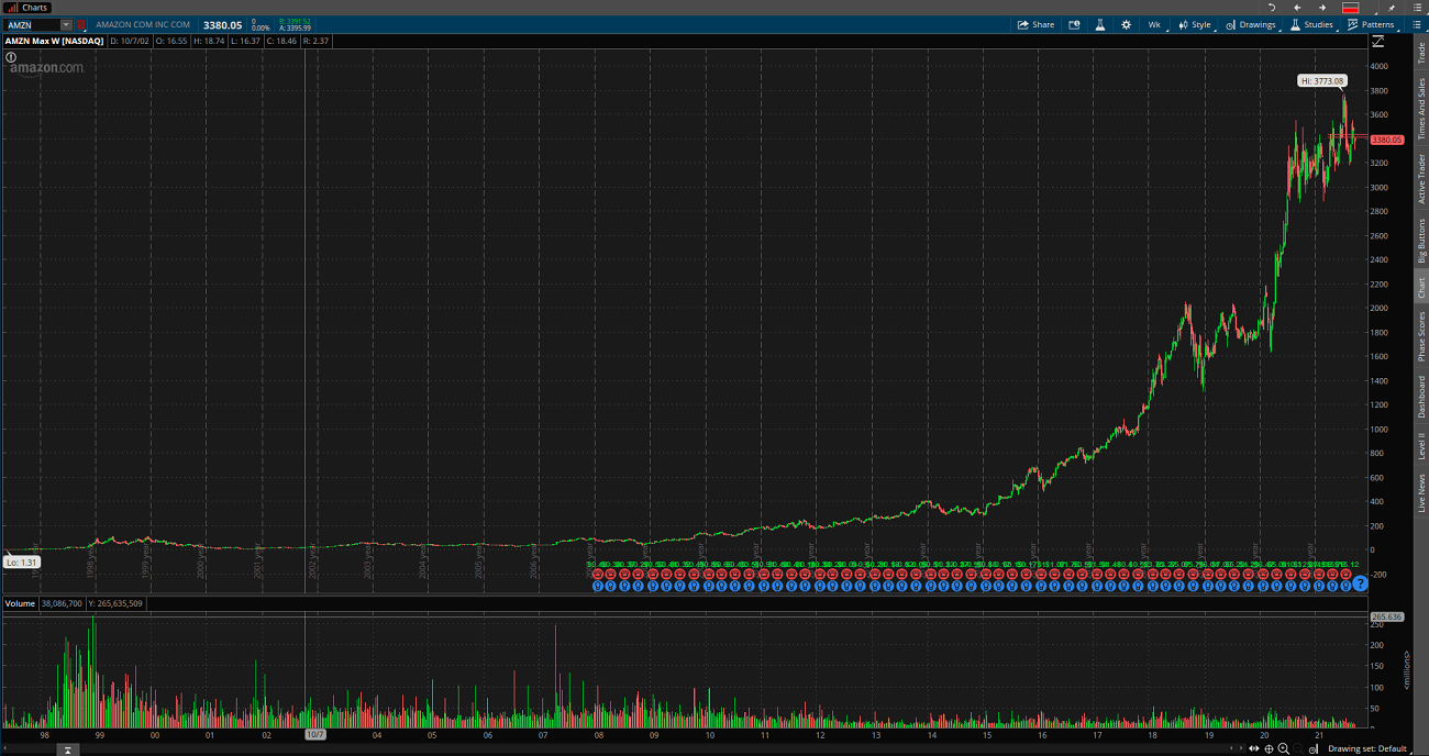 Если говорить о том, сколько можно заработать, то снова обратимся к примеру. Инвестировав 1 000 $ в акции Amazon в 1997 году, на текущий момент у вас был бы 1 362 000 $.