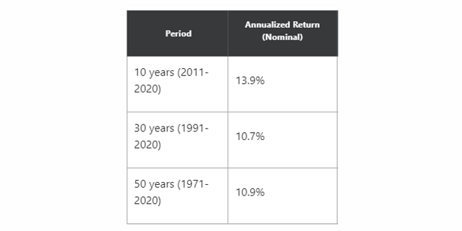 Посмотрим на фондовый рынок, взяв для примера опять же S&P500. Мы видим стабильный среднегодовой рост. Понятно, что когда-то рынок может упасть на 30%, когда-то на 50%, когда-то вырасти на 30%. Но если брать средние цифры, то начиная с 1926 года этот рынок растет на 10-11% в год.