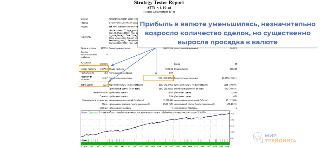 Тесты показывают, что при переходе с Н1 на М5 примерно на 25-30% выросла просадка. При этом получили негативное влияние на прибыль.