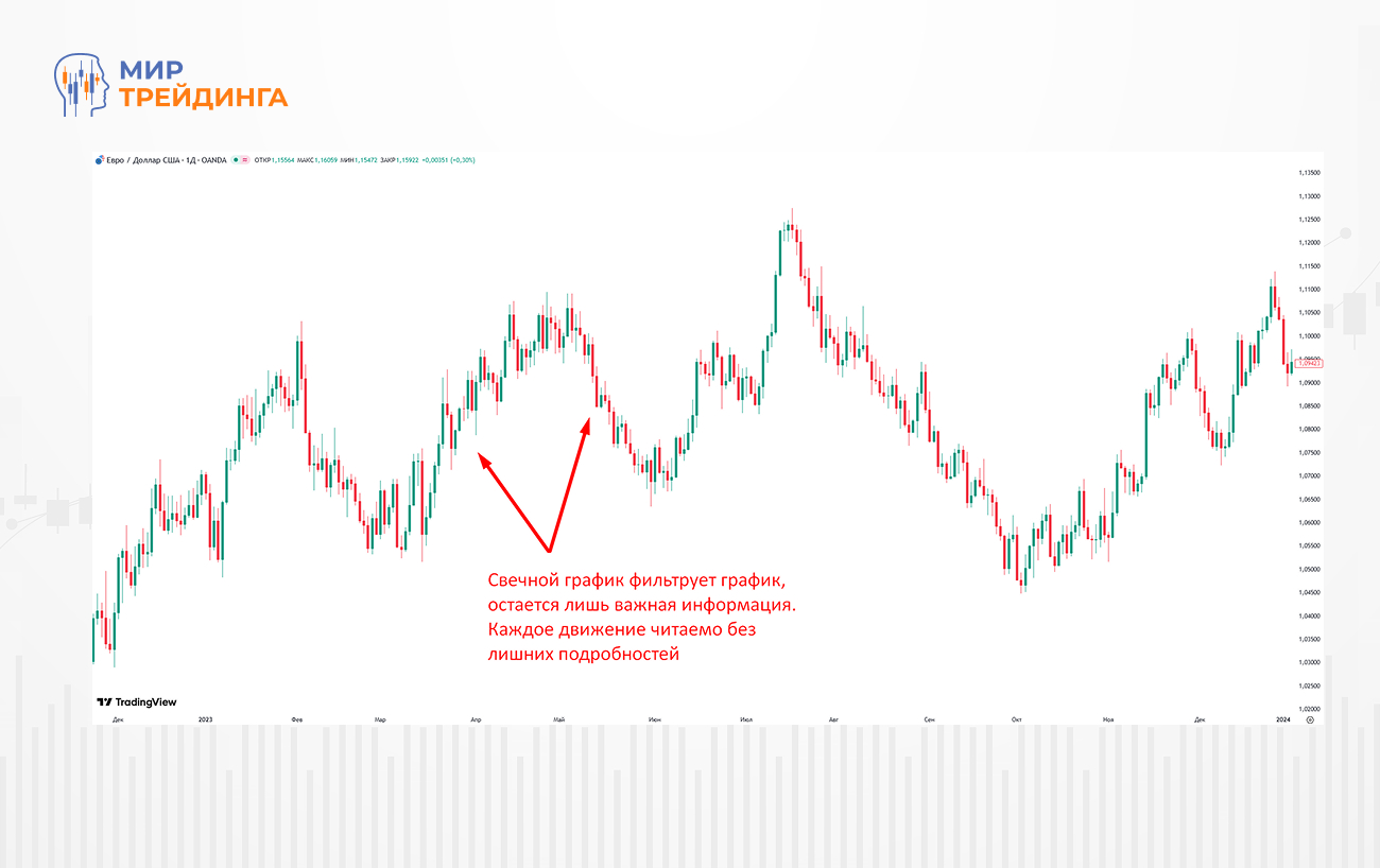 Свечной график можно назвать формой повествования, где каждая свеча рассказывает о происходящем за определенный период: кто контролировал движение, где была борьба, а где – капитуляция. Когда трейдер учится смотреть на график не просто как на набор цен, а как на живое повествование, он начинает видеть больше: